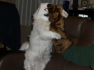 モコモコ素材のネズミ こうして写真を撮っている間にも、クルーズは興味深々。 早くも狙っているようです。 人間の手を入れて遊べます よくオットがはめているのですが、クルーズってばなんと・・・ 馬乗り状態!! そして取っ組み合い フラッシュで光ってしまったというのもありますが・・・ クルーズの目がマジで怖い。 これで激しく遊んだ後は、疲れてよくウトウトしてます。 実はこのおもちゃ、猫用みたいです(汗 ランキング参加中!おもちゃと真剣勝負のクルーズに1票を! PR