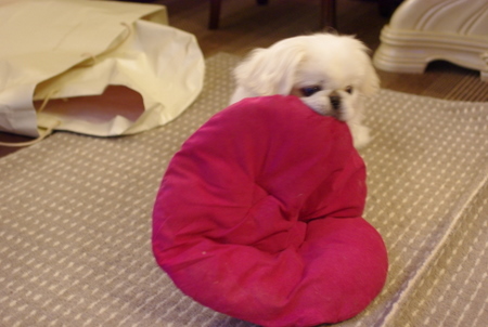 以前、クルーズがクッション=座布団を運んでくる動画をアップしました。 あれから約9ヶ月・・・また同じことをしています。 毎朝、毎朝、必ずクッションを持ってきますが、決して持って帰りはしません。 何でも出しっぱなしなのは、飼い主に似たのかな!?