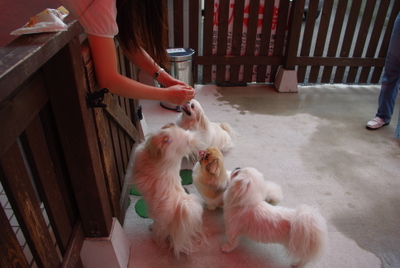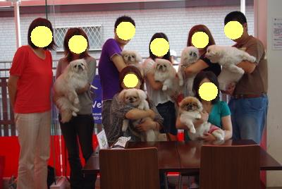 ゆめちゃん、うめちゃん、マーブルがひたすらおねだりしていました。 この写真、よーく見るとマーブルの舌が出ている!! ペキニーズ達も暑くなってきたようでカフェに戻ると、 今月お誕生日&大阪へ行ってしまうプラチナ肌さんへのサプライズです。 というわけで・・・ 結婚式を控えているプラチナ肌さん&彼氏さんの予行練習!?? 一緒に参加したわさびちゃんはちょっと不思議な表情。 白ペキ大集合に興奮し、ドッグランでは早々にバテて存在感が薄かった 我が家のクルーズもこの時ばかりは元気に。 とても楽しい時間で帰るのが惜しくなってしまいましたが・・・ 私はこの日大ボケで寝坊はするわ、首輪&リードを忘れるわ・・・。 みなさんからお土産をいただいたのに私ってば手ぶらで行ってしまい 申し訳ないです。お礼は近いうちに必ずさせていただきます!!! また一緒に遊んで下さいねー♪ PR ∴ この記事にコメントする