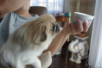 食欲にムラのあるペキニーズにあってマーブルの食いっぷりは ありがたいといえばありがたいのです。 でも、人間の食べ物への執着心が強くてビックリなんです。