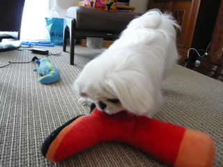 船橋のIKEAで購入してきた、靴の形をした犬用のおもちゃ。 デストロイヤークルーズ のガジガジ、振り回し攻撃にも負けず、今でも健在なのですが、少し穴が開いてきてしまったので、 昨秋に新三郷のIKEAへ行って、新しいおもちゃを購入してきました。 今度はブーツ型! 写真を撮っていたら、勘のいいコが早速やって来て・・・ 新しいおもちゃ発見だワン! と、早くもクレクレ攻撃が始まってしまいました。 こういうのを動物的勘というのでしょうか・・・本当に目ざとい。 ∴ この記事にコメントする