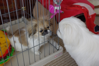 今日は私もオットも仕事だったため、朝~夕方まで不在だったのですが、 マーブルはおとなしくお留守番してくれていたようです。 さて、昨日まではちょっとしたことで吠えて怒っていたクルーズも さすがに3日目となると自分より小さい物体(マーブル)の存在を認めたのか、 それとも諦めたのか、少しずつ落ち着いてきました。 マーブルのことを遠巻きに眺めています。オトナの余裕というやつでしょうか? 大してお子様マーブルはと言うと・・・ と、日々自己主張が激しくなっています。 しかもクルーズの気を惹こうとして吠えてみたり、逆切れしてみたり。 メスとは思えないような声で訴えます。正直、甘え声はクルーズの方がカワイイ。