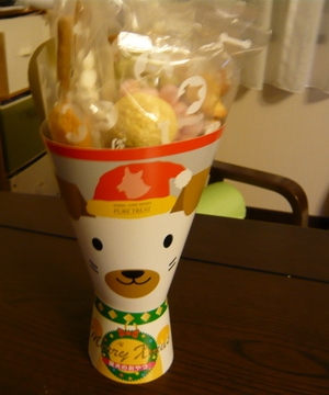 今年はクルーズに何を買ってあげようかなーと思っていたら、 行きつけのお店にこんなものがあったので買ってみました! クリスマス用お菓子セット! 人間用だと長靴型のケースに入っているんですよね。 私も子供の頃、よく祖母に買ってもらったので、 これを見たら、なんだか懐かしくなって買ってしまいました。 箱の中身はこんな感じ ボーロ、クッキー、ミニカステラにサーモンジャーキー、 これだけ食べきるのにどれくらいかかるかしら?って感じですが、 どれも賞味期限は長めなので心配いりません。 これボクのだワン♪ 箱を開けていたら、なんと勘が良いのでしょう! 嬉しそうな顔をして、私の側に来て待機していました。 危なくて枕元には置いてあげられませんでしたけどねー。 ランキング参加中!耳毛をカットしたら童顔になったクルーズに1票を!