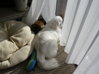 クルーズも外が気になるのでしょうか? 勝手にレースのカーテンを開けて、外を眺めています。 かわいい女の子通るかな?? 我が家のあたりはあまり犬を飼っている人がいなく、 犬が通ることはほとんどないのです。 クルーズがたまに興奮している時、外を見ていると、 だいたい女性が歩いてます。大人になってますます女性好きの様子。 ボク、番犬だワン! たまに外に向かって吠えています。 そういう時は男性が歩いていたり、何もいなかったりです。 やはり男性には警戒心を持っているのでしょうか? 女性の泥棒が来ても、番犬にはならなそうですね。 ランキング参加中!すっかり番犬気取りのクルーズに1票を! クリスマスです。