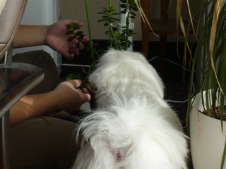 オットがリビングで観葉植物の手入れを始めたら・・・ 早速、クルーズも後を追いました。 ボクも仲間に入れて! 手入れに夢中のオットにはなかなかかまってもらえません。 しかも・・・クルーズにはこの木の葉っぱを食べた前科あり! オットに怒られつつ、しばらく待っていたのですが・・・ ボク、もう待てないワン と、お邪魔虫をして、さらに怒られるのでした。 たぶん・・・怒られてるって自覚が全くないんでしょうね(笑 ランキング参加中!めげないクルーズに1票を!