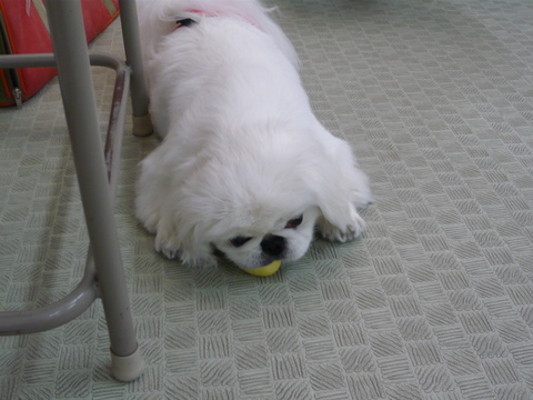 過ごすことが多くなってきた夏真っ盛り。 クルーズは新しいおもちゃに出会ってご執心でした。 そのおもちゃとは・・・ 黄色いたまご型! 見つめる目が真剣です 気に入ったワン♪ と、ずーっと口に咥えて、ガジガジして遊んでました。 でも、クルーズってとても口が大きいので、 このおもちゃが、口の中にすっぽり入っちゃうのです。 すっぽりだワン なので、飲み込んでしまったら大変と目を離すことができず、 私は無性に疲れました。 ランキング参加中!新しいおもちゃに弱いクルーズに1票を! 今日はサロンへトリミングへ行ってきました。