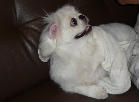 先月に引き続き・・・ 今日もコアラカットだワン! と、すっきりして帰ってきました。 毛の長いゴージャスなペキニーズも魅力的ですが、 私は毛の短い、仔犬のような童顔ペキニーズも大好き。 先月は拒否された・・・コアラポーズも決めてもらいました。 耳をあげたら、あらコアラみたい 白コアラだワン♪ これ以上やると、怒り出すので今日はこのへんで・・・。 でも、コアラカットはすぐに伸びてきてしまうので、 このカワイイ姿を拝めるのは、実は2~3日だったりします ![]() ランキング参加中!白コアラに変身!?したクルーズに1票を! 昨日は猛暑日で飼い主もバテバテでしたが、