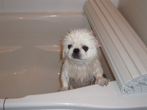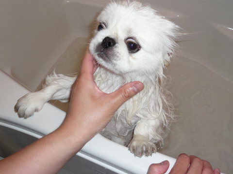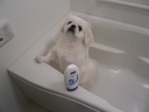 季節的アレルギー治療のため、今日は自宅で薬用シャンプー。