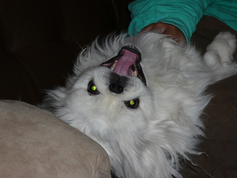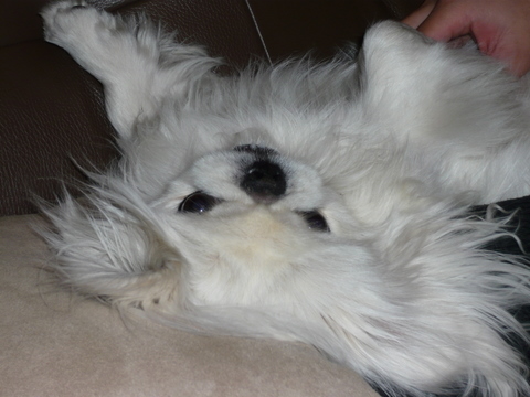 とよく言われていますが・・・私も最近、そう思います。 だって、こんなに一緒にいて面白い犬はなかなかいません。 我が家に来て1年になるのに、クルーズは毎日のように 新しいネタを提供してくれます。 今日は散歩から戻った後、ソファーに上がり、 仰向けだワン しかもクッション枕にしているし!なんと無防備な格好なんでしょう。 微妙に開き気味な前足、特に左足がなんとも言えません。 ずーっとカメラを向けていたら、 眠くなってきたワーン と大あくびをしていました。 こんなに面白いコと生活してしまったら、 きっと普通の犬種を迎えたとしても、物足りなくなってしまいそう。 さすが中国4000年の歴史!? 4000年の歴史はないけど奥深いクルーズに一票を。