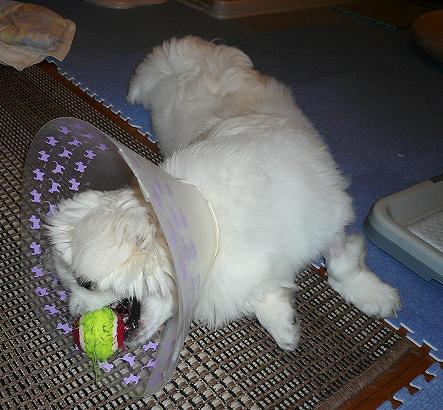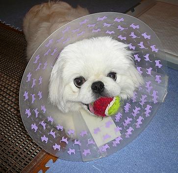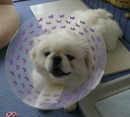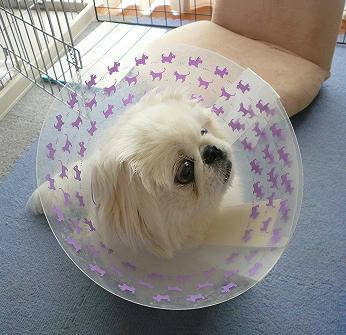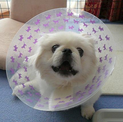 明日はついに抜糸なので、エリザベスカラーも今日が見納め!?